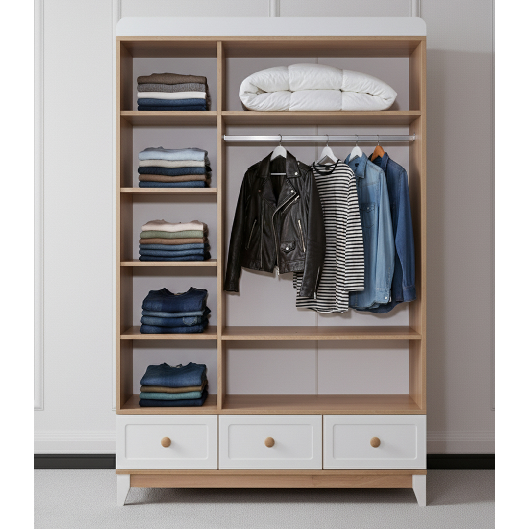 Alan yönetimine boyut katan raf düzeni ve modern tasarımlı Meşe Dolap!