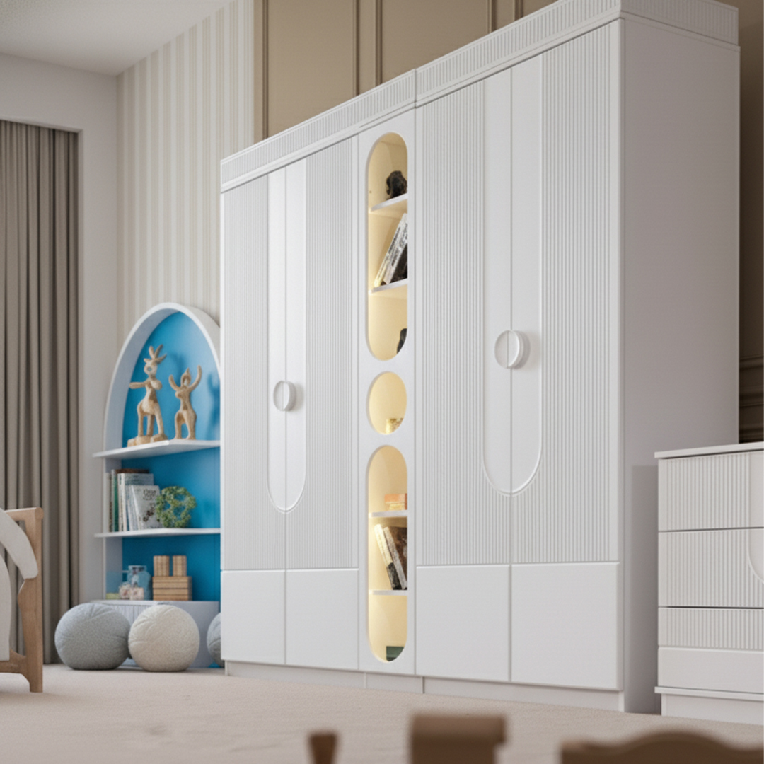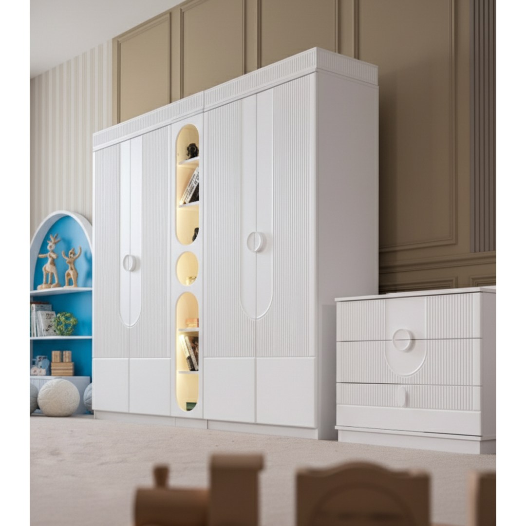 Venedik 4 Kapılı Kitaplıklı Dolap ve Şifonyer