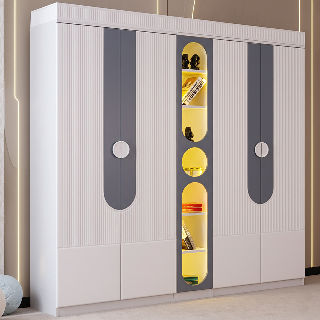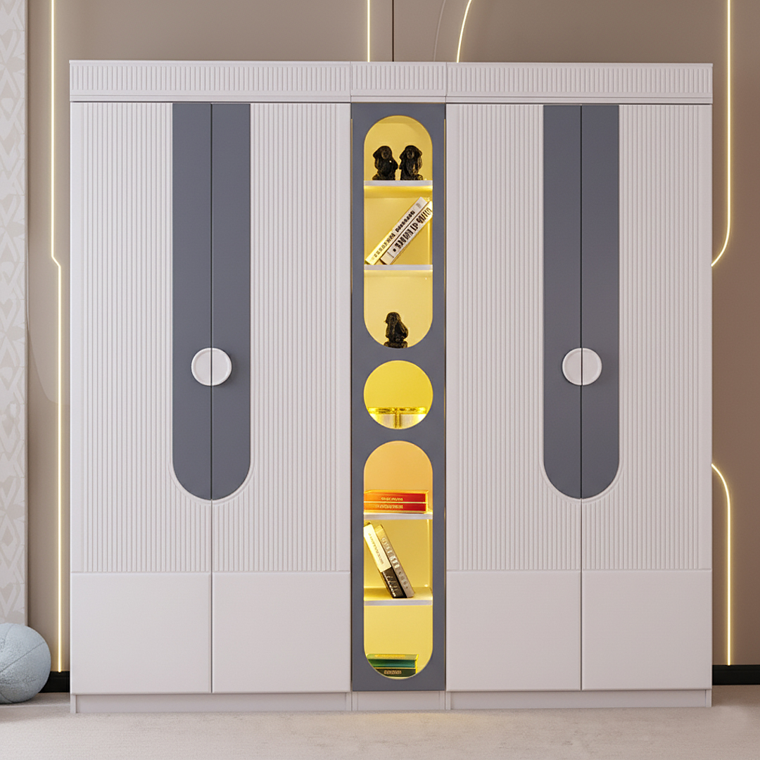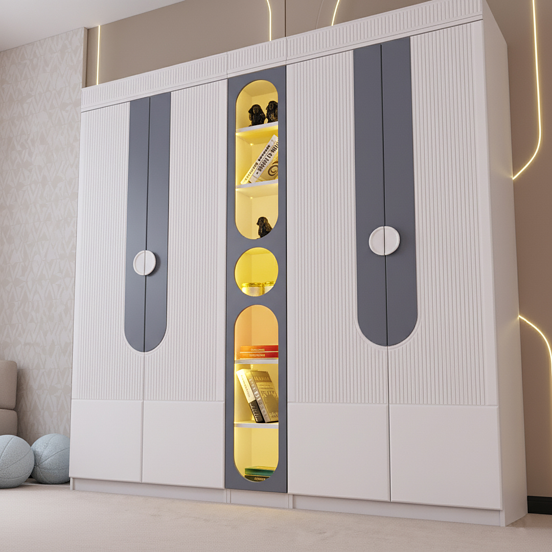 Venedik Gri 4 Kapılı Kitaplıklı Dolap
