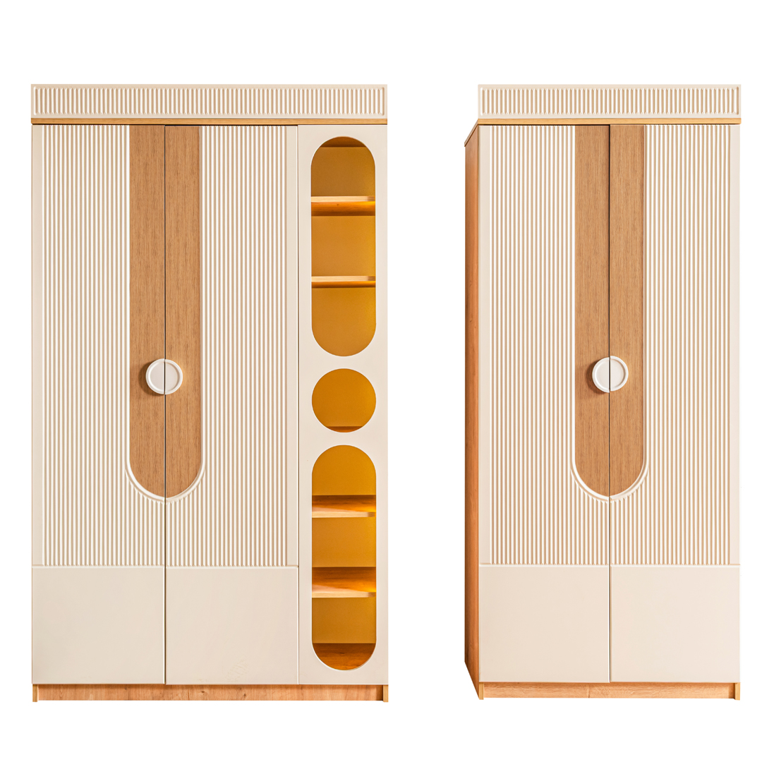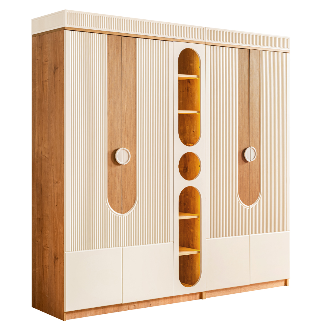 Venedik 4 Kapılı Kitaplıklı Dolap (Meşe/Krem)