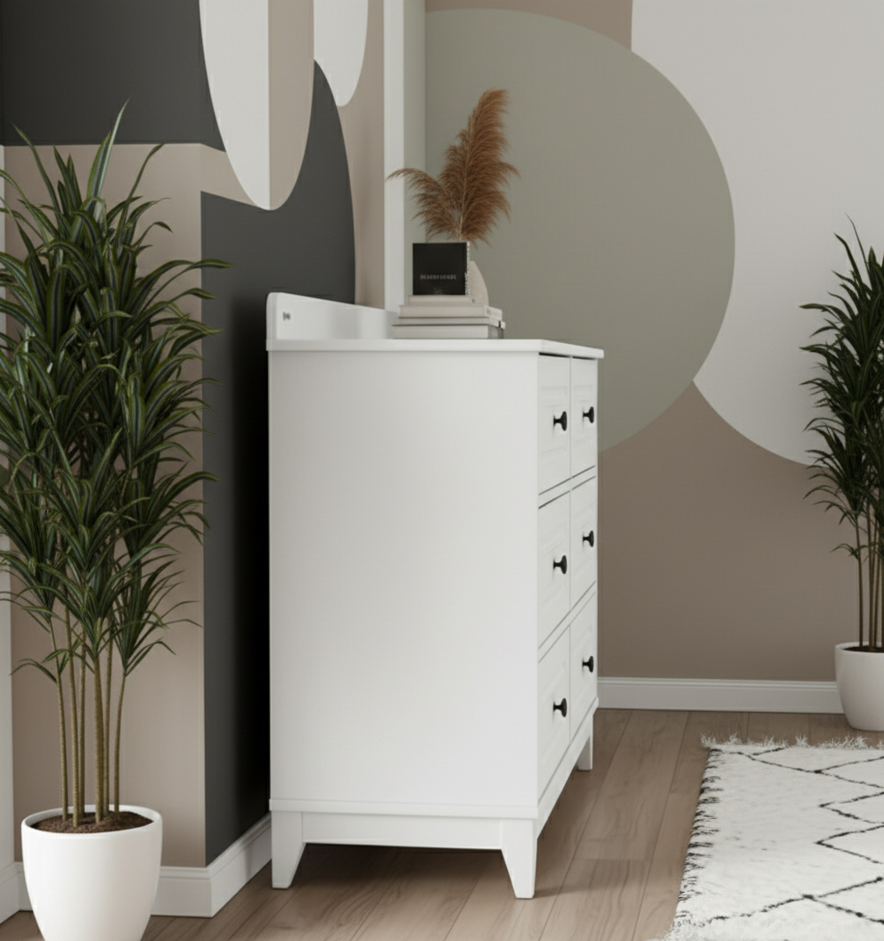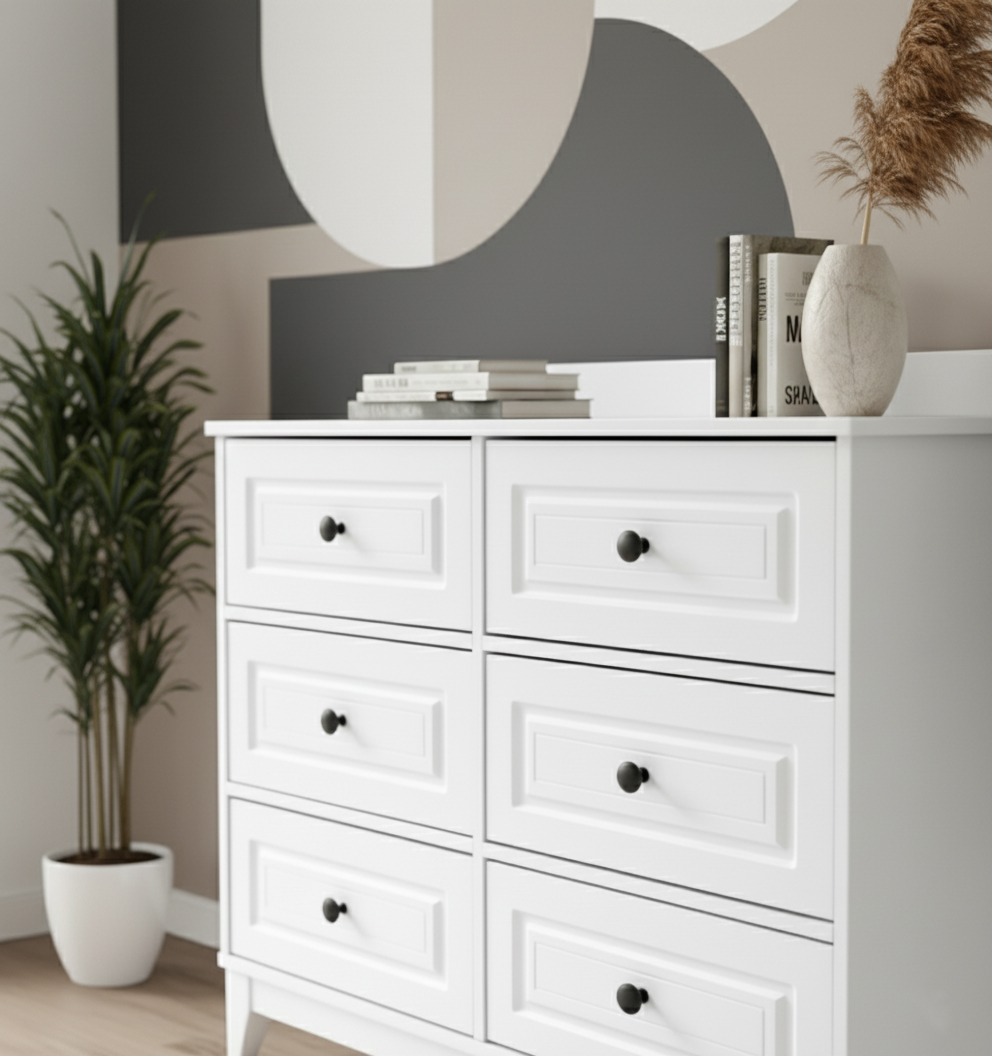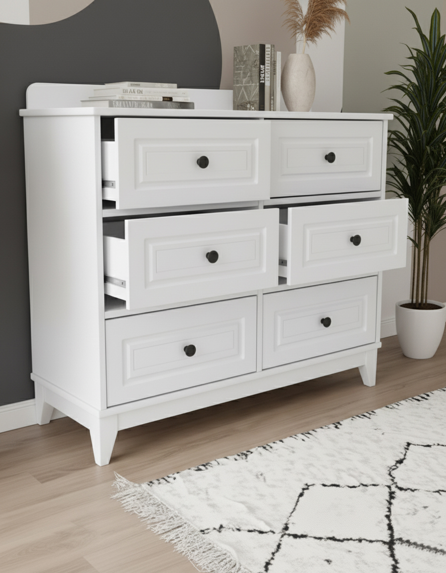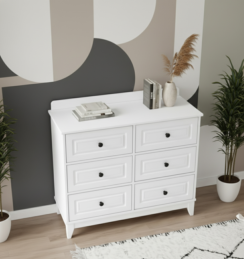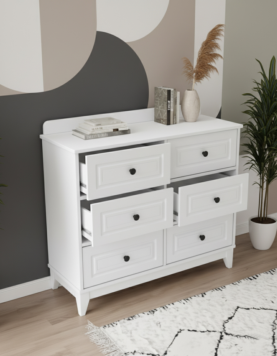Sade görünümü kadar birden fazla çekmeceye sahip olması ile ön plana çıkan Verona Şifonyer, geniş iç hacmi ile yeterli depolama alanı sunar.
