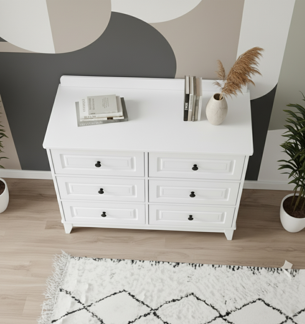 - Yüksek ayakları sayesinde şifonyeri yerinden taşımak zorunda olmadan temizlik imkanı sağlar.